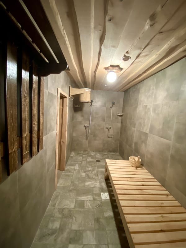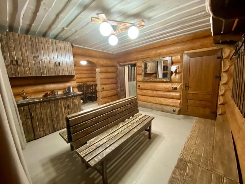 Чиста, затишна лазня з неймовірним запахом дерев’яного зрубу. Ідеальний варіант для відпочинку та оздоровлення! Лазня вміщує до 10 чоловік. Передбачено зливне відро з прохолодною водою. Також є вихід до озера з котеджа, де можна окунутись після лазні.