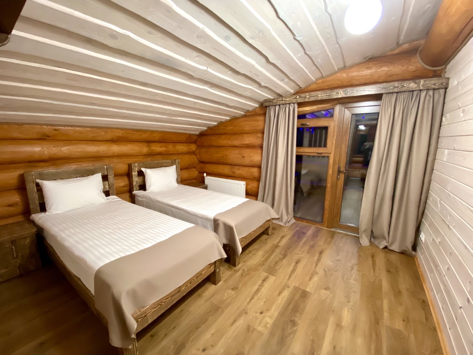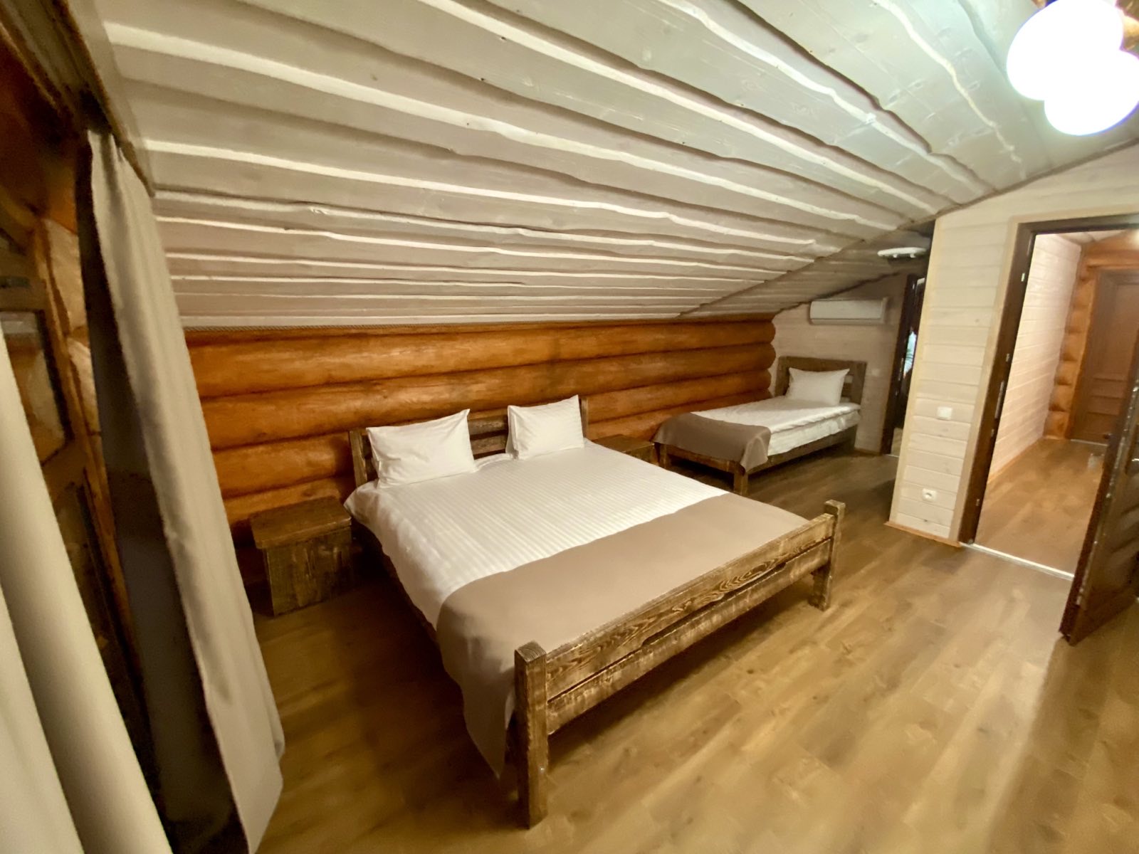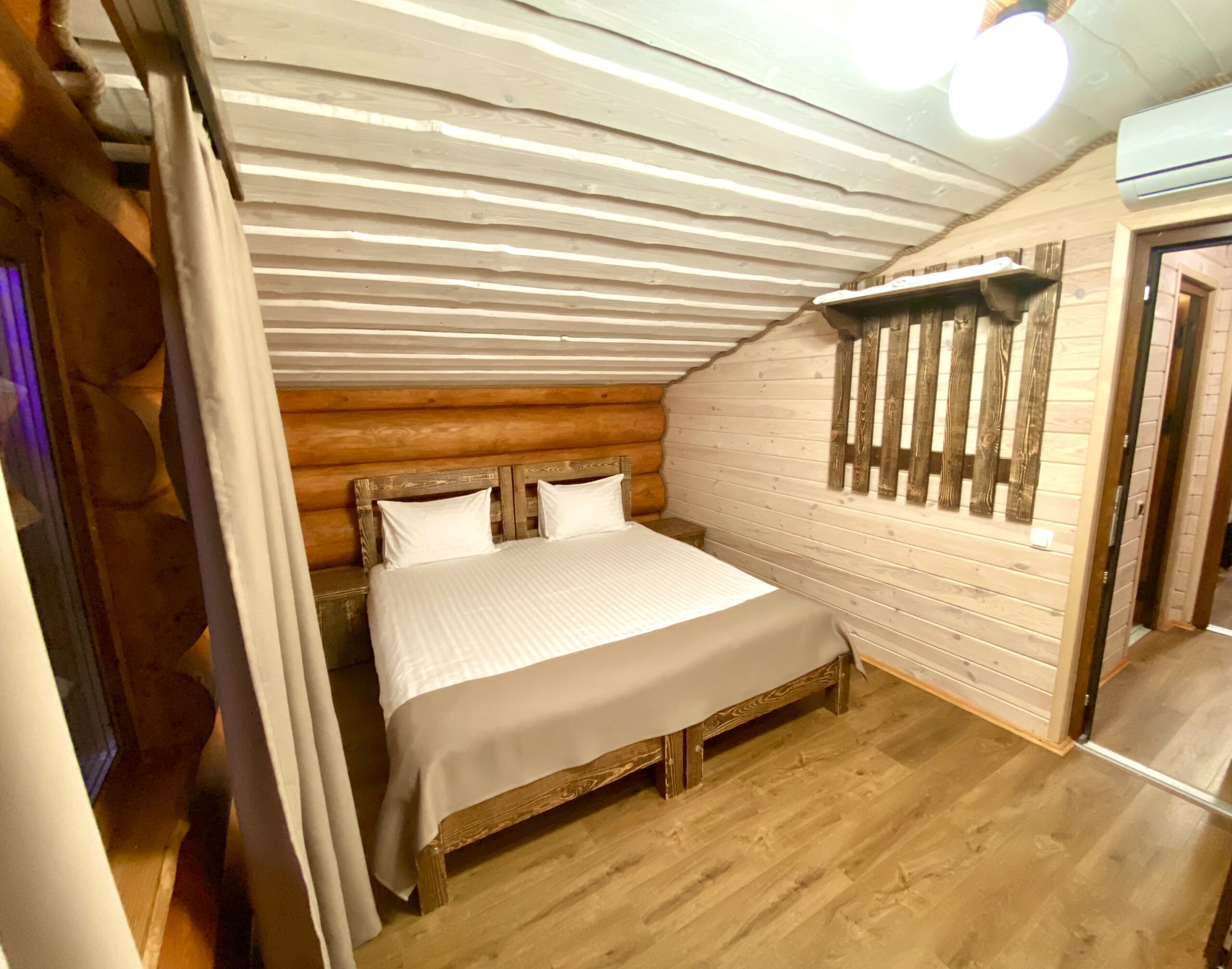 Затишний, сучасний двоповерховий котедж з лазнею з неймовірним запахом дерев’яного зрубу і санвузлами в кожній кімнаті. Ідеальний варіант для відпочинку і оздоровлення! У котеджі 7 спальних місць. Кожному гостю надаються тапочки, банні шапки, шампунь, мило, рушник, простирадло. Передбачено зливне відро з прохолодною водою. Також є вихід до озера з котеджа, де можна окунутись після лазні.